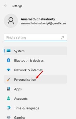 Etapa 4. Para desativar a lista Recomendada completamente, pressione Tecla Windows + I em seu teclado. Isso abrirá o aplicativo Configurações. Em Configurações, clique na opção ‘Personalização’.