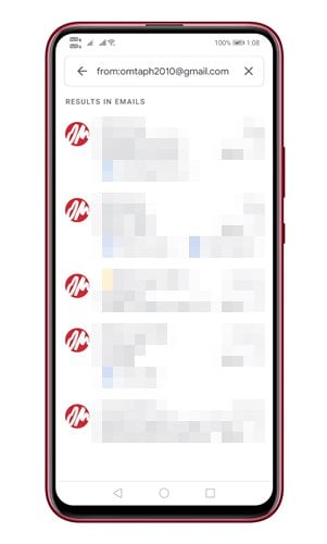 Etapa 4. O aplicativo móvel do Gmail agora classificará todos os e-mails recebidos pelo remetente específico.