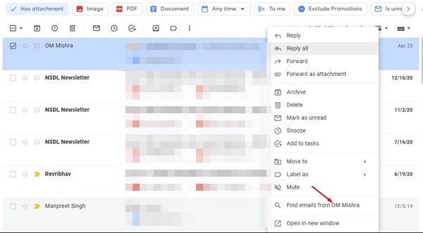 Etapa 2. No menu do botão direito, selecione a opção ‘Encontrar e-mails de’.