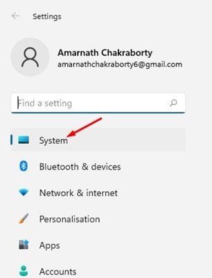 Etapa 2. à esquerda painel, clique na opção’ Sistema ‘.
