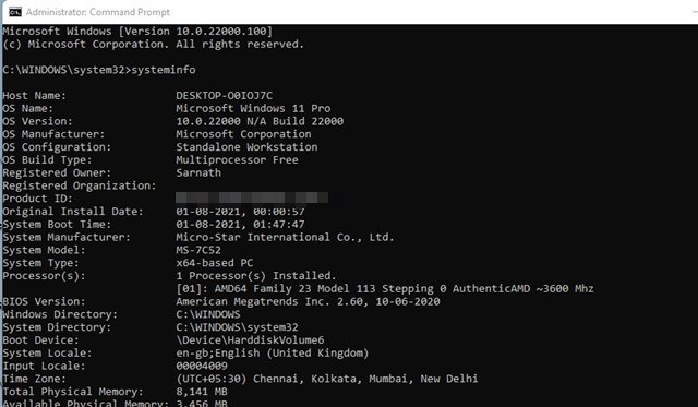 Isso é isto! Você terminou. É assim que você pode usar o CMD para verificar as especificações completas do seu PC no Windows 11.