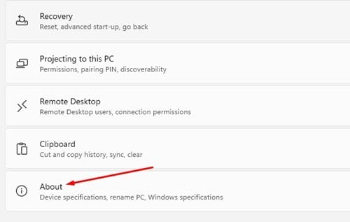 Etapa 3. No painel direito, role para baixo e clique na opção’ Sobre ‘.