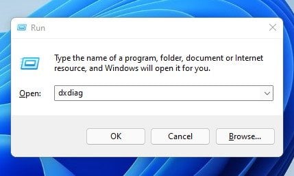 Etapa 2. Na caixa de diálogo EXECUTAR, digite’ dxdiag ‘e pressione o botão Enter.