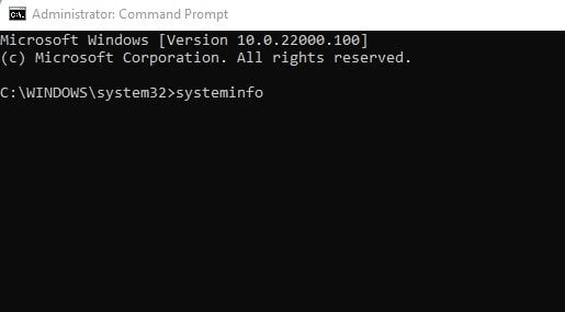 Etapa 2. No Prompt de Comando, digite’ systeminfo ‘e pressione o botão Botão Enter.