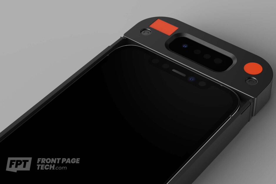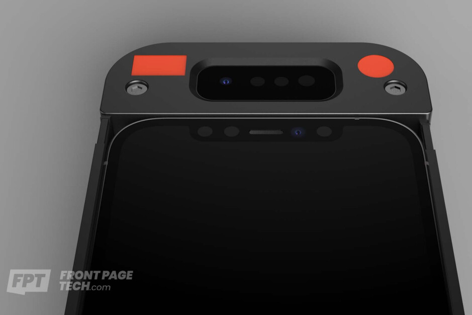 Os renderizadores vistos acima e abaixo são supostamente b baseado em vídeos e imagens de cerca de 75 unidades de protótipo, com a ideia do caso de ID facial de protótipo ser para conduzir testes em uma escala maior dentro da empresa sem fornecer acesso às unidades anteriores do iPhone 13.