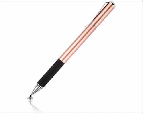 Esta caneta leve é outra boa para uso básico. Ele contém uma ponta de cobre de precisão fina de 1,45 mm e tecnologia sensível para melhor precisão e compatibilidade, enquanto fornece uma experiência confortável de escrita e desenho. Há uma segunda ponta de malha que pode ser usada como uma opção secundária caso a bateria acabe.
