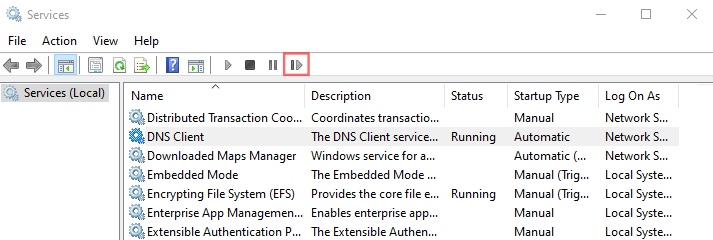 Veja como reiniciar o serviço de cliente DNS usando Windows Serviços :