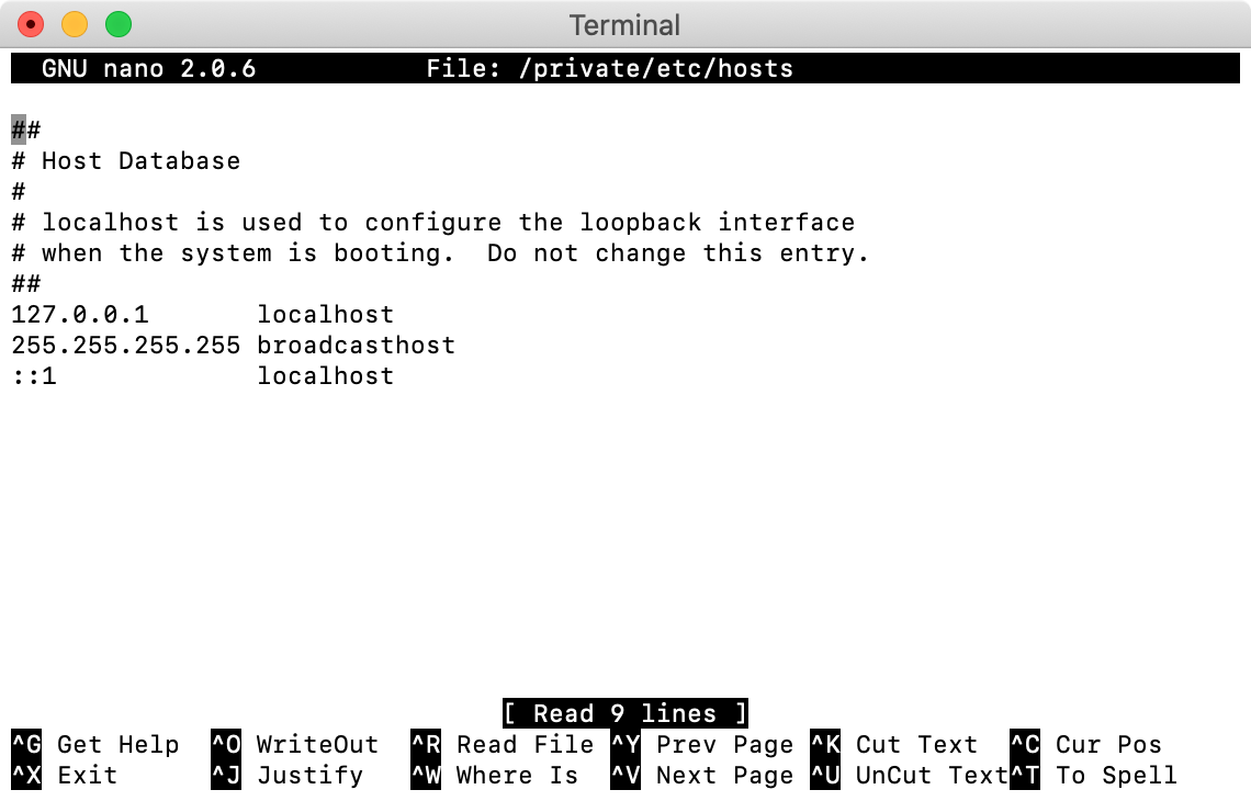 Abra seu Terminal usando o Launchpad Digite o seguinte comando para executar o Nano Editor como administrador: sudo nano/private/etc/hosts Digite sua senha, e você será direcionado para o arquivo hosts . Remova as informações do site inacessível e salve as alterações pressionando Control + O