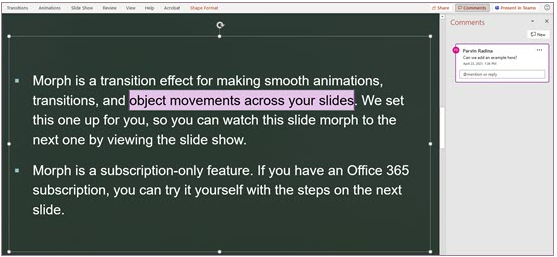 A Microsoft anunciou que lançará um recurso de comentários atualizado no PowerPoint nas próximas semanas. A experiência Modern Comments ajuda a melhorar a experiência colaborativa dos usuários com recursos como resolução de comentários, ancoragem de comentários em objetos e texto e @ menções aprimoradas.