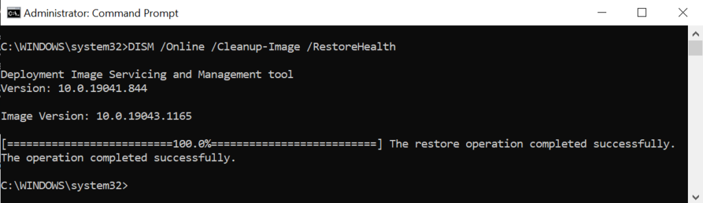 Aguarde até que a ferramenta verifique seu PC para arquivos de sistema corrompidos. Em seguida, vá para a próxima etapa quando receber uma mensagem que diz: “A operação de restauração foi concluída com êxito”. Ou quando o medidor de progresso atinge 100%.