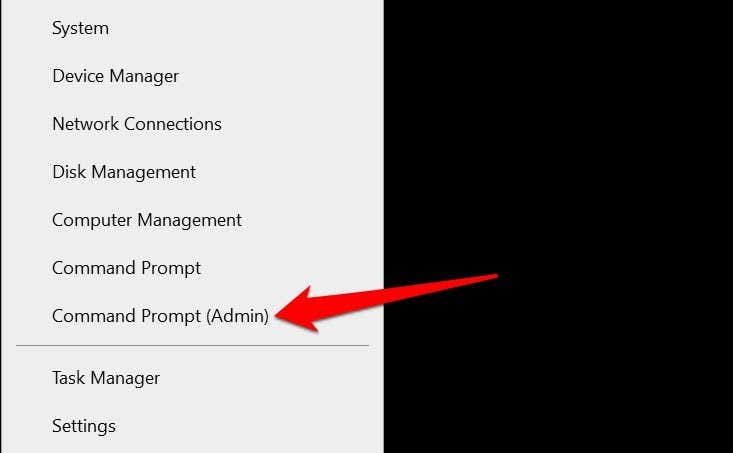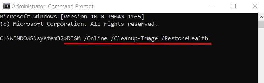 Pressione a tecla Windows + X e selecione Prompt de comando (Admin) no Menu de acesso rápido . Cole DISM/Online/Limpeza-Image/RestoreHealth no terminal do Prompt de Comando e pressione Enter .