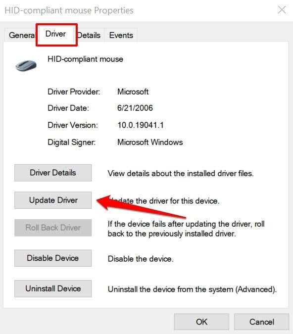 Um driver do mouse corrompido, desatualizado ou com defeito pode ser o motivo pelo qual o clique com o botão esquerdo do mouse não está funcionando em seu computador. Atualizar o driver do mouse para a versão mais recente eliminará bugs e corrupção. Mas se o clique com o botão esquerdo parou de funcionar após a instalação de uma atualização de driver, desinstale a atualização ou remova o driver de seu PC.