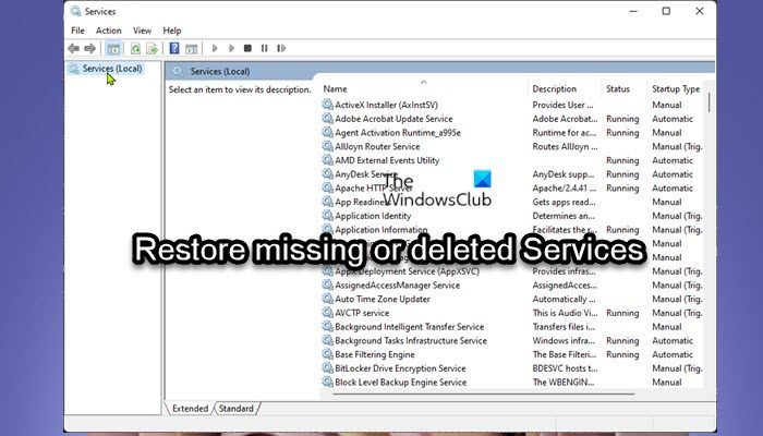 Por um motivo ou outro, você pode notar que um ou mais serviços foram excluídos no Gerenciador de serviços em seu computador Windows 11 ou Windows 10. Nesta postagem, apresentaremos os vários métodos ou sugestões que você pode tentar para restaurar serviços ausentes ou excluídos no Windows 11/10.