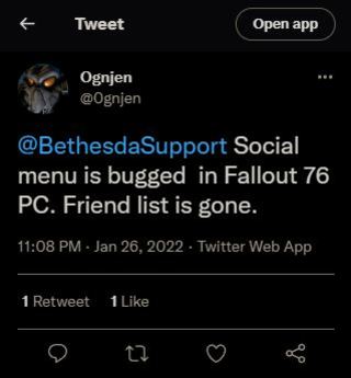 Acontece que o Suporte da Bethesda está ciente do problema com a lista de amigos do Fallout 76 e disse que está investigando o mesmo. No entanto, não há previsão de quando o problema será resolvido.