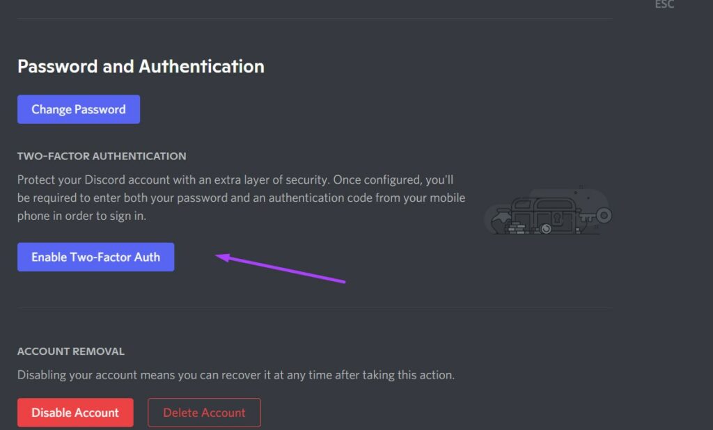 Etapa 4: role a lista de opções e selecione E nable Two-Factor Auth.