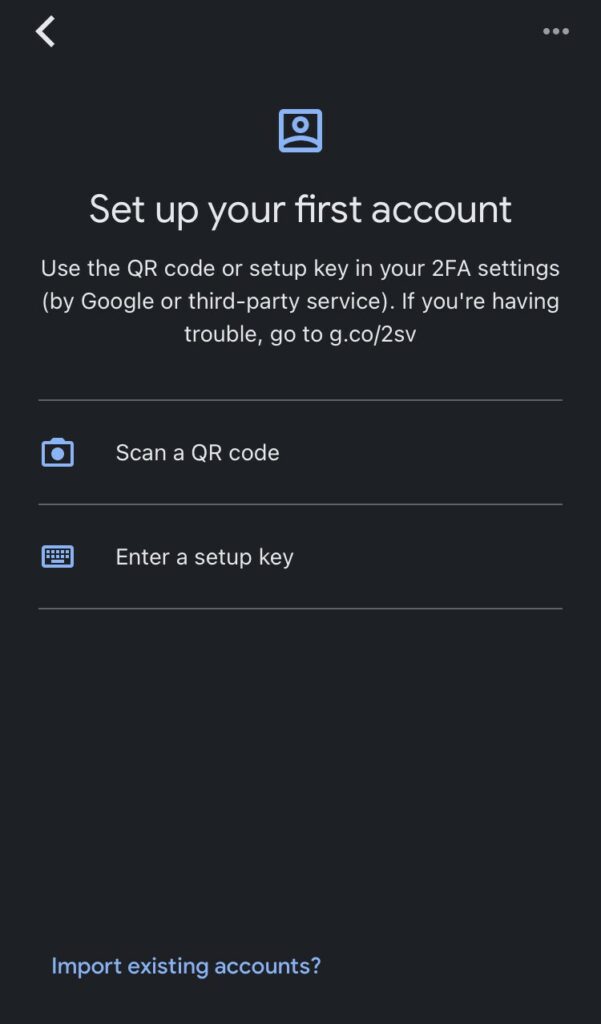 Google Authenticator: o aplicativo Google Authenticator requer a escolha seu método de entrada preferido. As duas opções são digitar a chave fornecida ou digitalizar um código QR. Para iPhones, usar sua câmera para digitalizar um código QR é simples. No entanto, se você estiver usando um dispositivo Android, precisará instalar um aplicativo de scanner de código de barras para digitalizar o código QR. Authy: ao usar o autenticador de autenticação, forneça seu e-mail e número de telefone para verificar seu dispositivo. Você pode optar por verificar seu dispositivo por meio de mensagem de texto ou ligação telefônica. Depois de fazer isso, toque em + no centro da tela para adicionar uma nova conta. Fazer isso leva você à tela Contas de autenticação para digitar o código ou digitalizar um código QR.