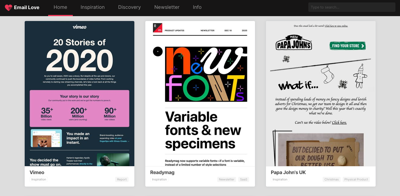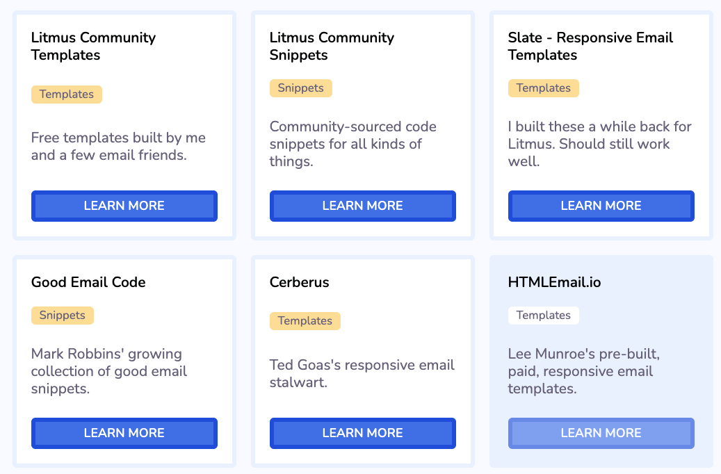 Thebetter.email fornece um repositório crescente de recursos úteis de marketing por e-mail, incluindo pessoas, sites de aprendizagem, ferramentas, detalhes sobre provedores de serviços de e-mail , boletins informativos, código e recursos de e-mail interativos. Escolhido a dedo por Jason Rodriguez, que está no setor há anos e passou muito tempo vasculhando a lama para encontrar as coisas boas.