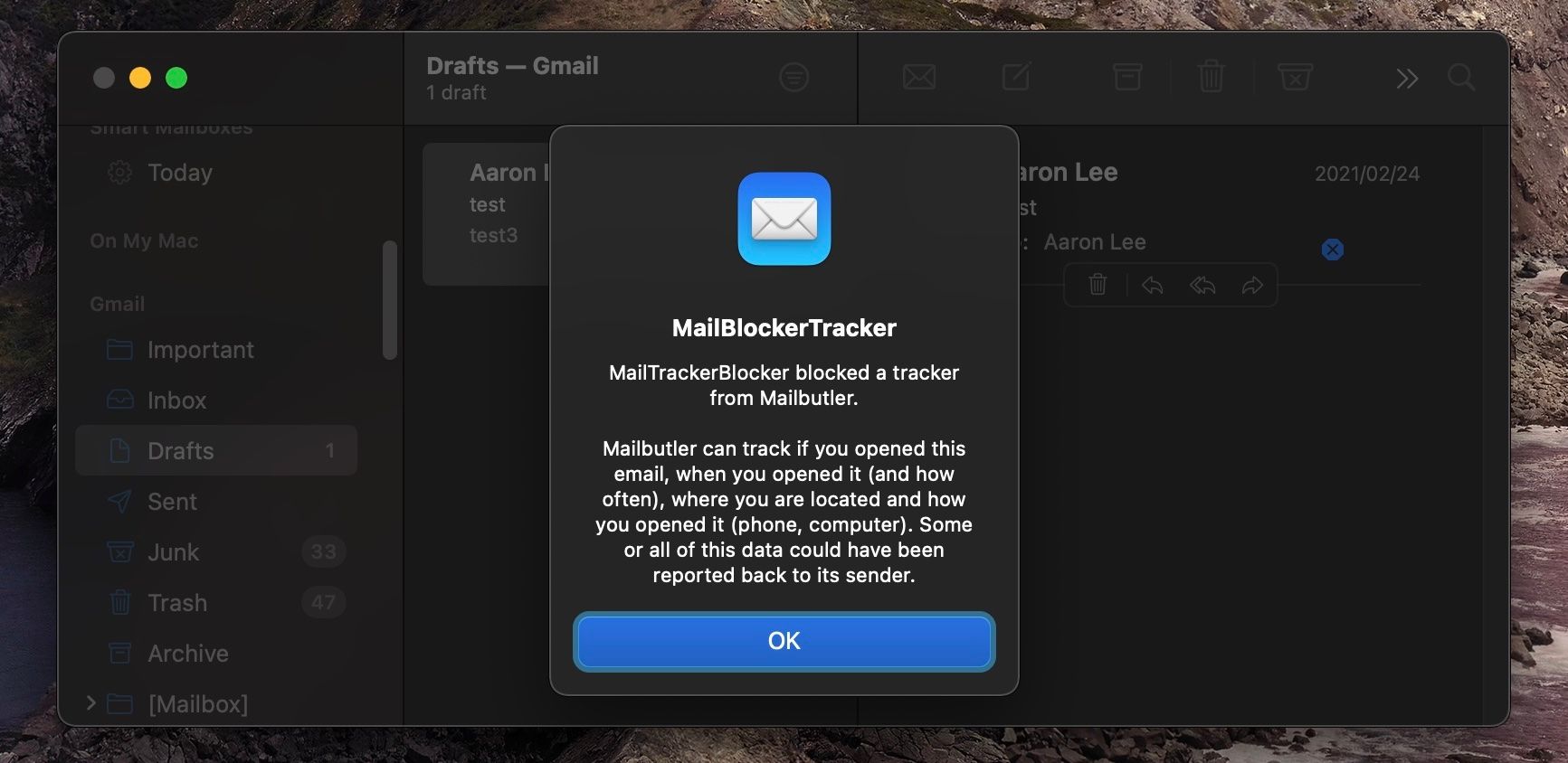 A maioria dos e-mails de marketing incluem rastreadores em e-mails em HTML, para que possam acompanhar com que frequência, quando e onde os clientes abrem os e-mails. MailTrackerBlocker atua quase como um bloqueador de anúncios para navegadores, mas funciona com clientes de e-mail. A ferramenta identifica quem está rastreando os clientes e remove os pixels de rastreamento antes que eles possam ser exibidos, para que você ainda possa carregar todo o conteúdo remoto e manter seu comportamento privado. Atualmente disponível apenas para Apple Mail no macOS 10.11-11.x ( mensagem para Jeremy Keith! ).