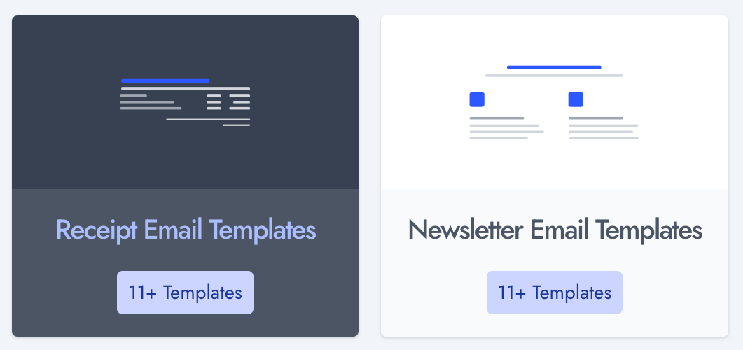 Stripo , Chamaileon , Cartões postais , Topol.io , GoodEmailCode , Pixelbuddha e Bee Free todos apresentam muitos modelos de e-mail HTML gratuitos, o Litmus fornece Modelos de e-mail responsivos para boletins informativos, atualizações de produtos e recibos, e o CampaignMonitor tem um criador de modelos de e-mail HTML gratuito com a funcionalidade arrastar e soltar.