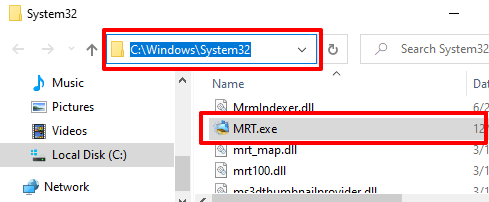 Isso abrirá uma nova janela do Explorador de Arquivos destacando o arquivo MRT.exe.