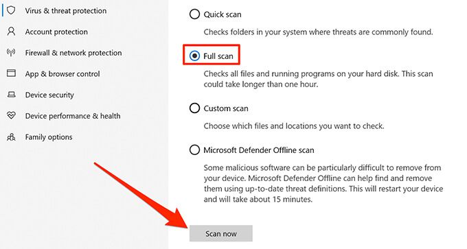 - Escolha a opção Verificação completa e selecione Verificar agora na parte inferior.