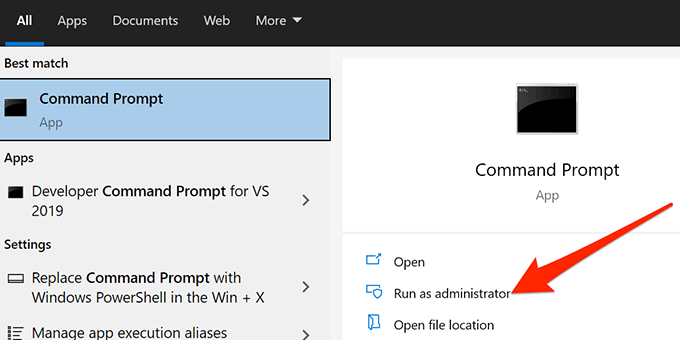 - Acesse o menu Iniciar , pesquise Prompt de comando e selecione Executar como administrador à direita.