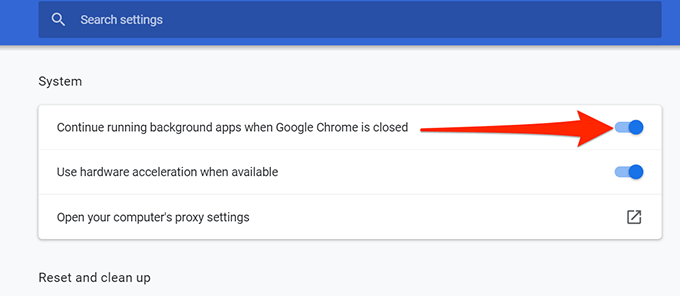 - Desative Continuar executando aplicativos em segundo plano quando o Google Chrome estiver fechado à direita.