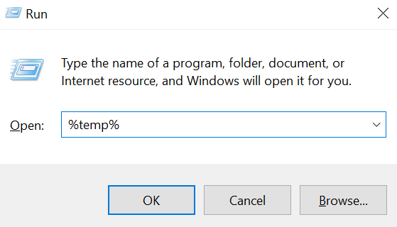 - Digite %temp%✓ em Executar e clique em OK para abrir a pasta temporária.