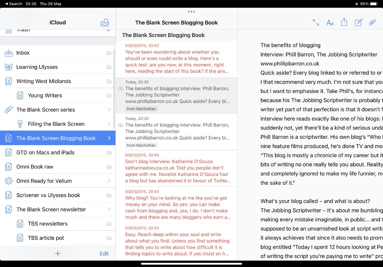 Tudo isso. De qualquer forma, desde que você começou a usar o Ulysses, e isso se transforma em uma biblioteca muito atraente de todo o seu trabalho.