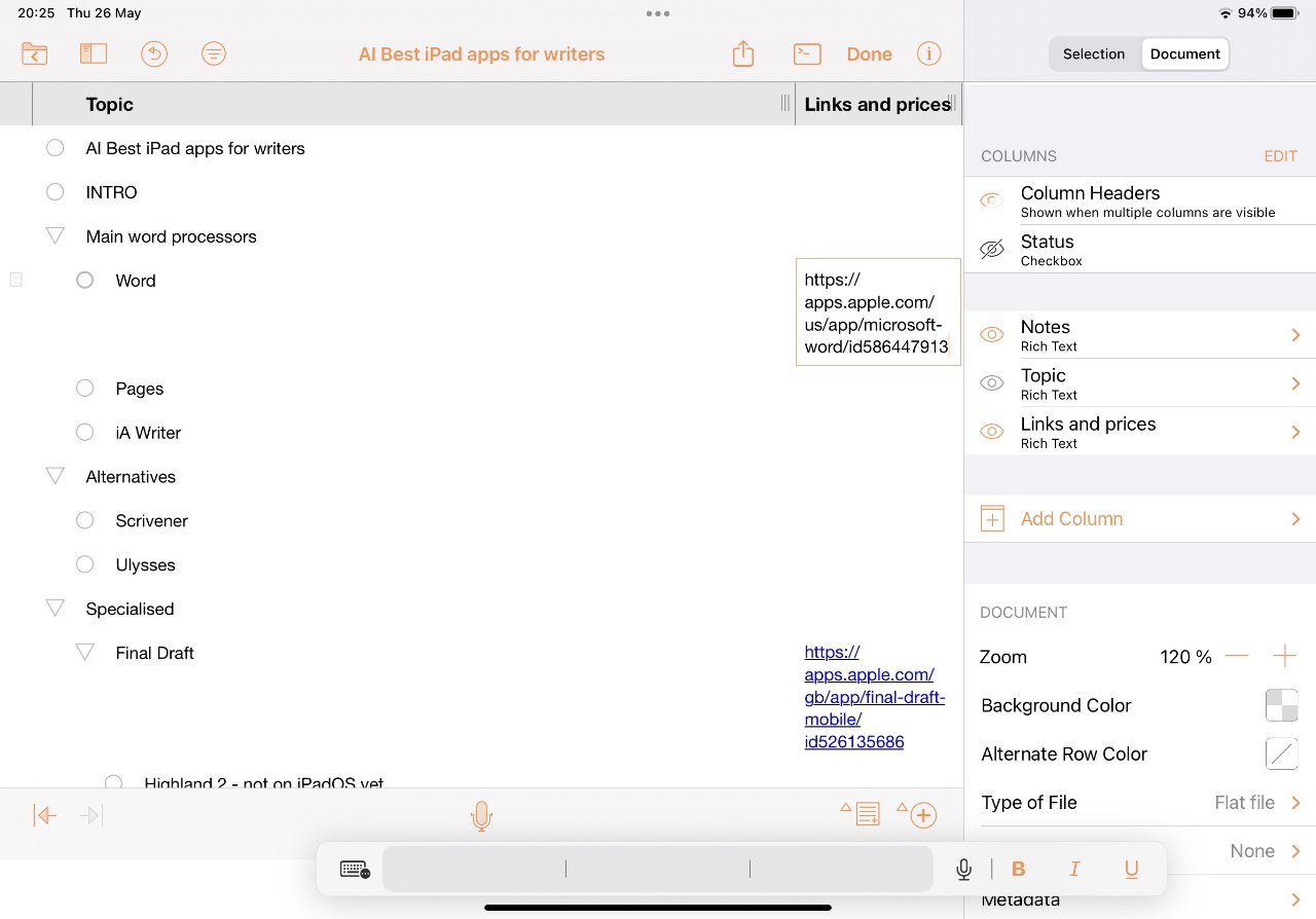 Scrivener para iPad custa US$ 20 na App Store.