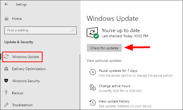 Agora, na guia ‘Windows Update’, clique em ‘Verificar atualizações’. Todas as atualizações disponíveis agora serão baixadas e instaladas em seu sistema.