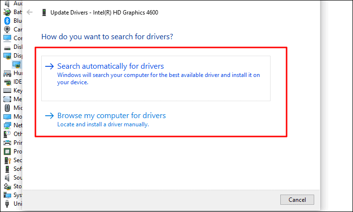 Drivers desatualizados também podem causar problemas com a reprodução de vídeo. Embora o Windows procure e atualize seus drivers, você deve verificar manualmente se há atualizações de driver. Para atualizar o driver, você pode deixar o Windows procurar o melhor em seu sistema ou escolher manualmente um do sistema para instalá-lo. Os drivers podem ser encontrados no site do fabricante.