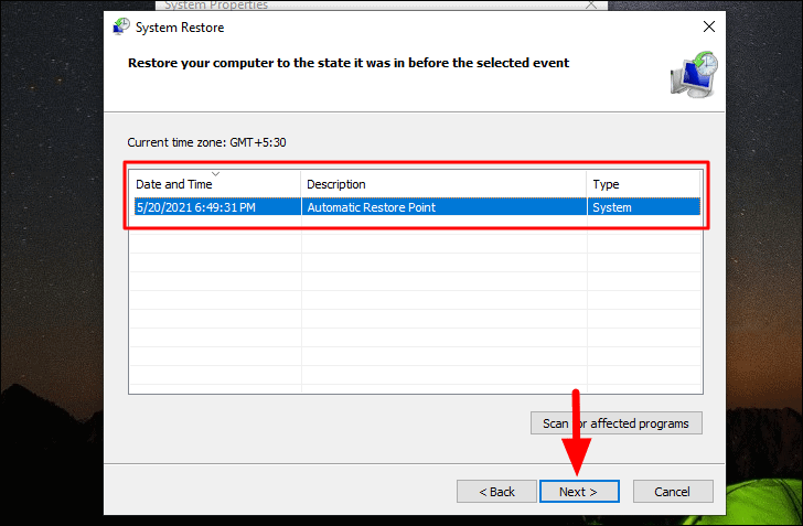 Se você começou a encontrar o erro após uma atualização ou fazer algumas alterações nas configurações, você restaura o Windows para um ponto anterior. A Restauração do sistema reverte o Windows para um ponto anterior. O Windows cria automaticamente um ponto de restauração antes de você fazer grandes alterações ou instalar uma atualização para que, se algo der errado, você possa sempre voltar ao estágio em que tudo funcionou bem. Você também pode criar um ponto de restauração manualmente.