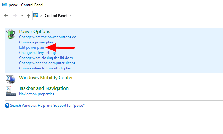 As ‘Opções de energia’ serão mencionadas no início. Selecione ‘Editar plano de energia’ abaixo dele.