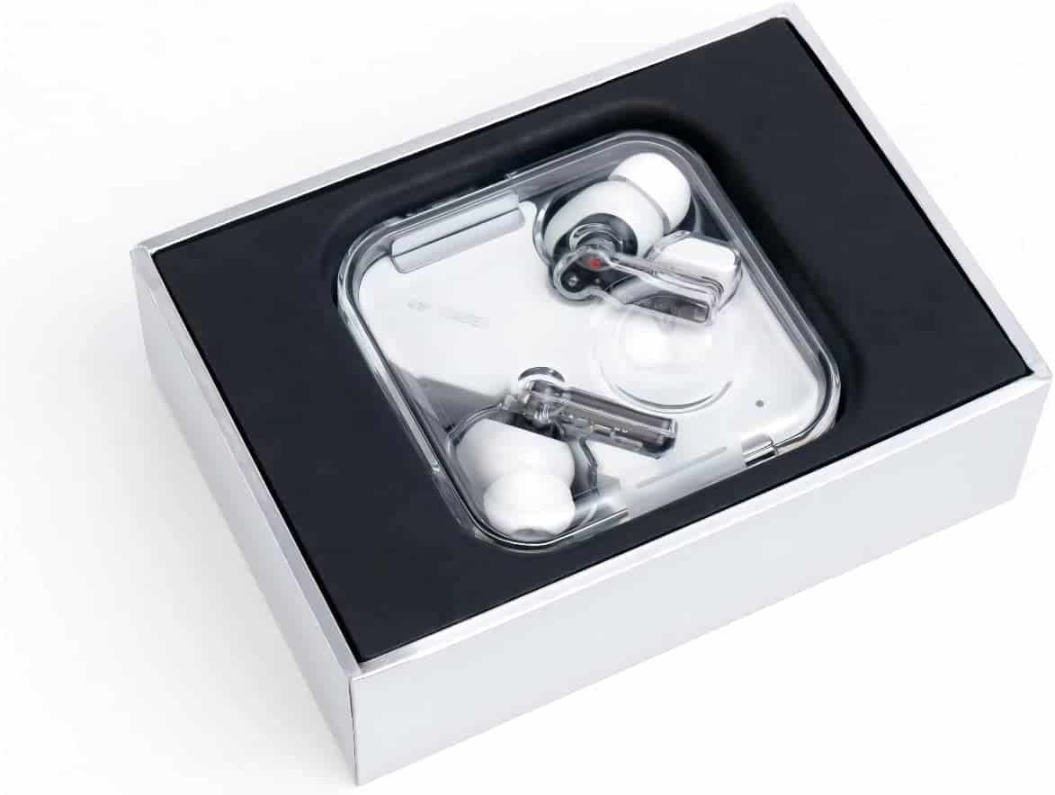 As variantes branca e preta estão disponíveis como parte desta oferta e vêm com preços idênticos. Esses fones de ouvido vêm com esse design exclusivo. Nada é conhecido agora, eles são transparentes. Até a caixa em que eles vêm é transparente.