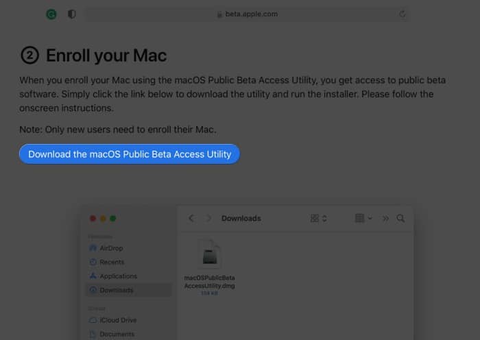 Vá para beta.apple.com. Clique em Inscrever-se para se inscrever ou Fazer login com seu ID Apple e senha. Selecione a guia macOS → role para baixo até a seção Inscrever seu Mac. Clique em Fazer download do Utilitário de acesso beta público do macOS.Agora, clique em Permitir para iniciar o download.Abra a pasta Downloads ou a pasta onde você baixou os arquivos. Clique duas vezes em macOSPublicBetaAccessUtility.dmg. Novamente, clique duas vezes em macOSPublicBetaAccessUtility.pkg para executar o instalador e seguir as instruções na tela. Agora, você pode receber um aviso lembrando-o de fazer um backup do Time Machine; se já tiver feito, clique em OKContinuar.Clique em Continuar novamente. Leia e aceite o contrato de licença de software da Apple até clicando em Concordo. Em seguida, clique em Instalar. Digite sua senha do Mac → selecione Instalar software.Quando o download estiver concluído e a tela’instalação bem-sucedida’aparecer, clique em Fechar.Agora, uma tela de atualização de software será exibida; clique em Fazer upgrade agora.