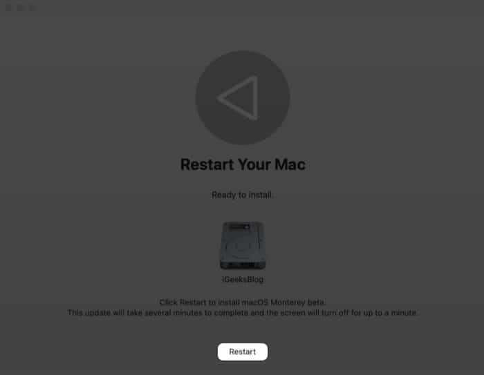 Uma janela de instalação deve aparecer automaticamente; clique em Continuar. Clique em Concordo para aceitar os termos e condições. Em seguida, clique em Concordo novamente para confirmar. Selecione a unidade/partição para instalar a versão beta e clique em Continuar. Digite sua senha do Mac e clique em Desbloquear. Clique em Reiniciar se o Mac não reiniciar automaticamente.