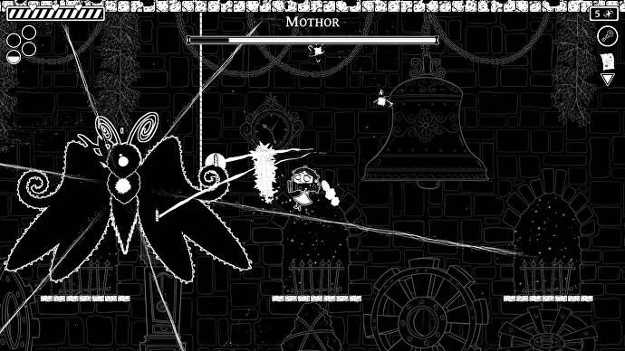 As lutas contra chefes também não parecem muito distantes de um nível em Super Mario Bros., estranhamente. Ao atravessar uma zona e eliminar as criaturas endêmicas, você logo acabará trancado em uma única sala com um grande monstro para lidar. Enquanto você tenta eliminá-los com sua tocha e estilingue, muitas vezes haverá um punhado de lacaios para lidar – e um baú ou dois (se você tiver sorte). Além disso, você estará pulando evitando projéteis recebidos, assim como Mario faria, tentando acertar tiros no inimigo mortal. As únicas diferenças seriam o ambiente monocromático e o fato de você estar tentando resgatar seu avô desses monstros, e não a princesa Peach.