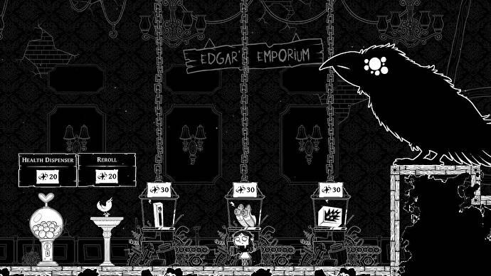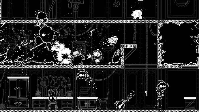‘Combate leve’ e fazer com que os jogadores limpem o ambiente da escuridão também exigem que os jogadores se concentrem em seu ambiente, e por boas razões; é tão fácil perder algo bom. A escuridão pode esconder baús, alçapões e, às vezes, até o fundo preto com o qual você aparentemente não pode interagir esconderá um segredo ou dois. Aquele guarda-roupa que você continua pulando em cima? Você pode realmente abri-lo para uma recompensa. E os segredos simplesmente não param por aí: não apenas a mansão monocromática é incrivelmente agradável de se ver, mas também envolvente. Amarração de Isaac, coma seu coração.