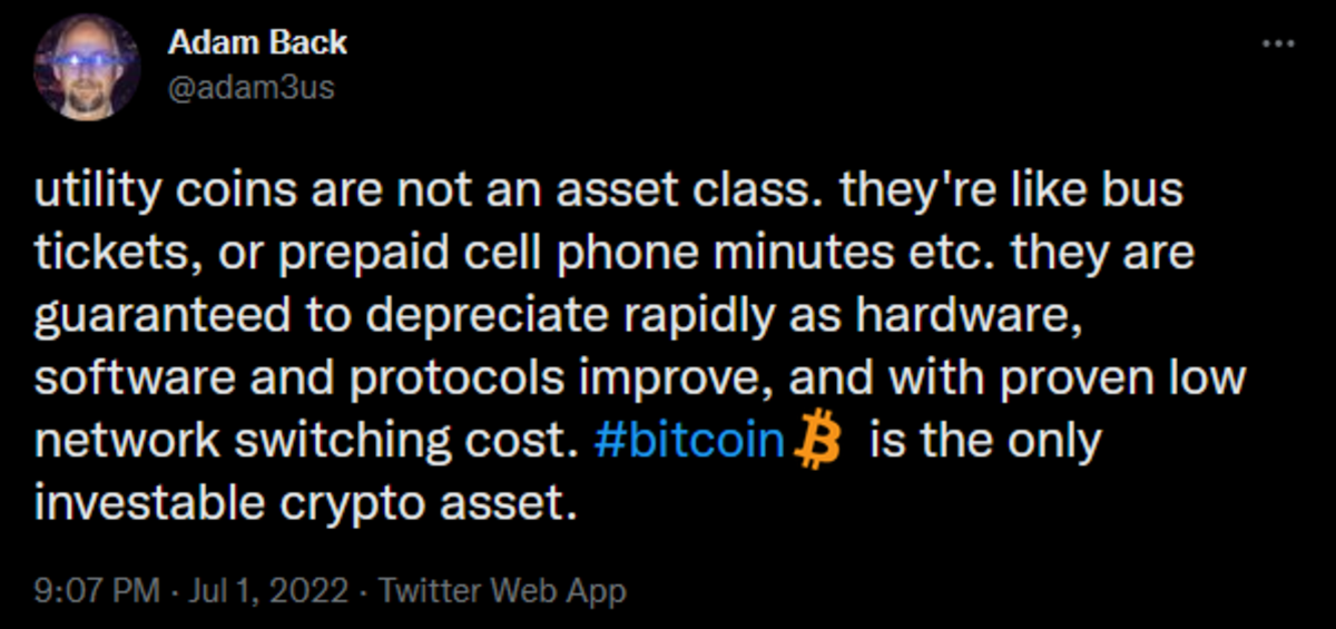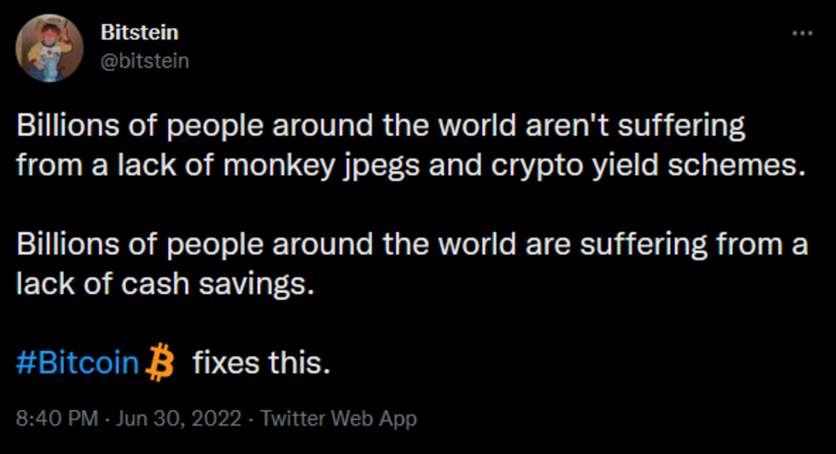 Na prática, a maioria dos maximalistas que conheço simplesmente não tem interesse em usos não monetários e está mais interessada em distinguir o Bitcoin de todo o lixo “cripto” que existe. E em momentos como esses, com tantos credores de criptomoedas interrompendo saques (por exemplo, Celsius, Vauld, Voyager), declarando falência do Capítulo 11 (por exemplo, Voyager) ou aceitando acordos de resgate (por exemplo, BlockFi, Voyager), há um forte argumento para dizer que os maximalistas estavam certos.