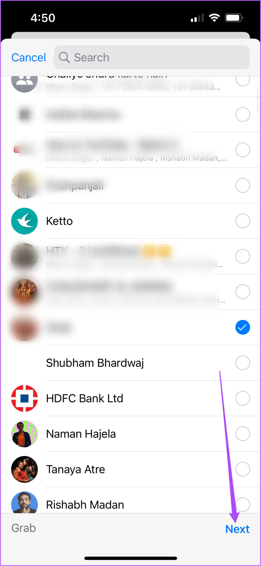 Etapa 5: Selecione seu contato e toque em Avançar.