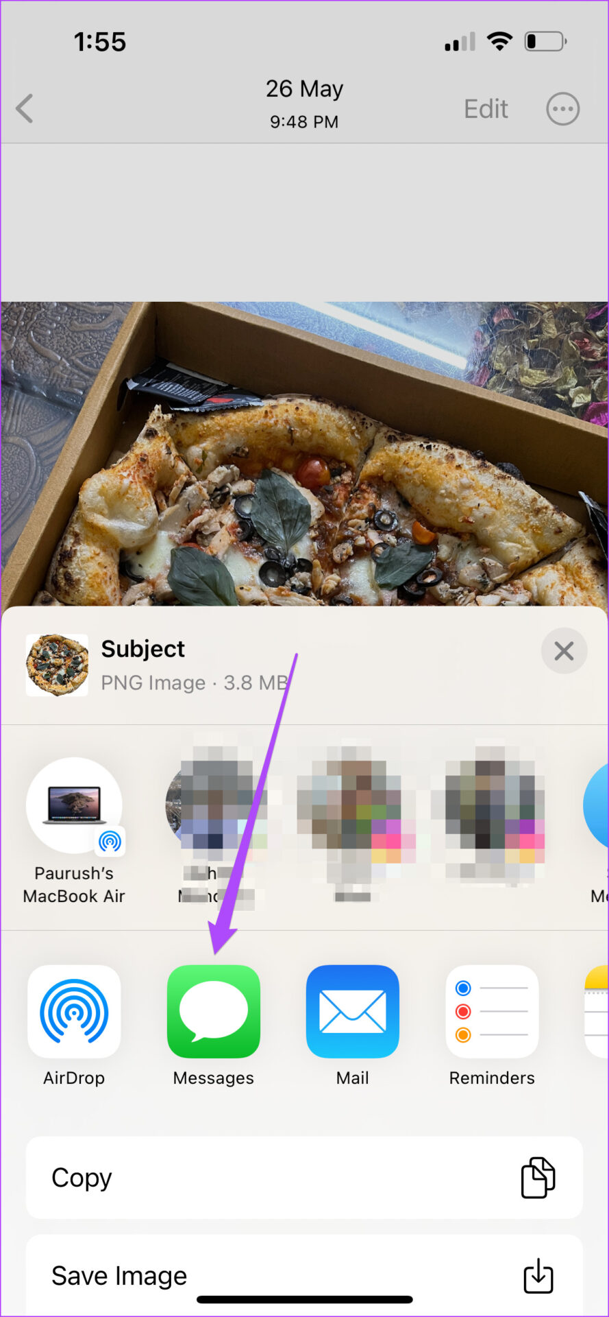 Etapa 3: Nas opções de compartilhamento na tela, toque em Mensagens.
