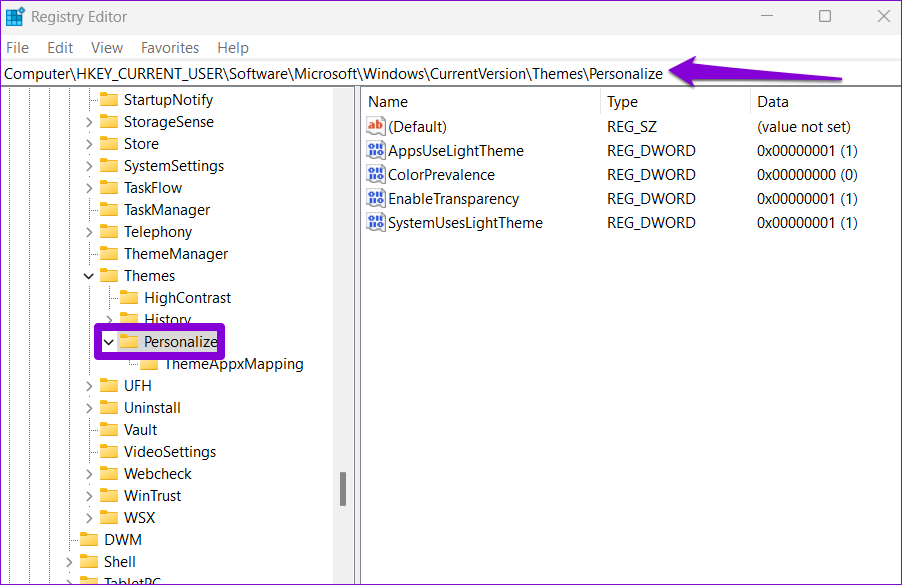 Se o problema persistir, você pode usar o Editor do Registro para ativar os efeitos de transparência no Windows 11.