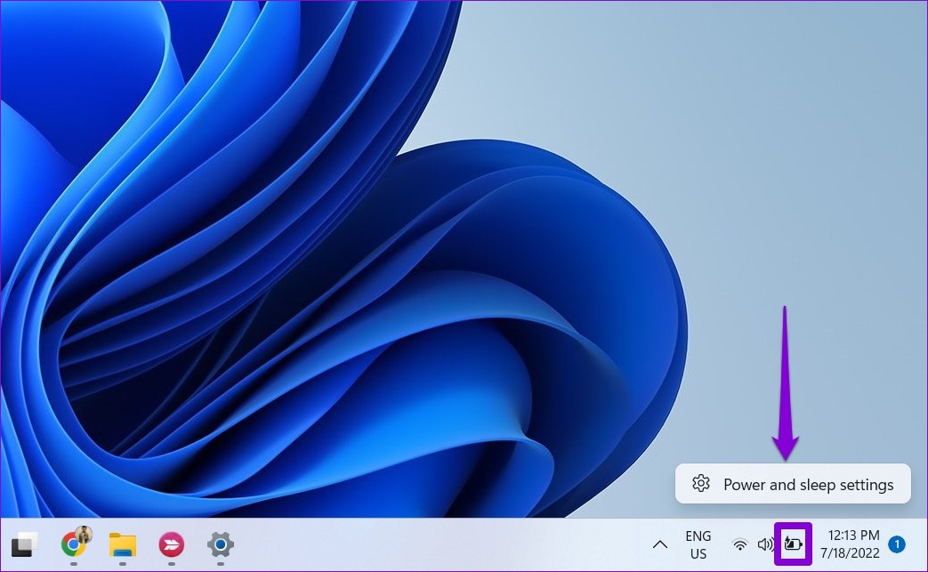 Etapa 1: clique com o botão direito do mouse no ícone da bateria na barra de tarefas e selecione’Energia e suspensão configurações.’