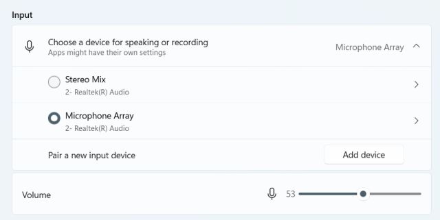 3. Aqui, na seção”Entrada”, escolha o microfone com fio que deseja usar e pronto. Você configurou com êxito um microfone com fio no Windows 11.