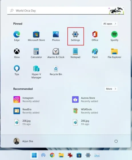 1. Para testar seu microfone no Windows 11, pressione o atalho de teclado do Windows 11 “Windows + I” e abra as Configurações. Você também pode abrir manualmente as Configurações no menu Iniciar.