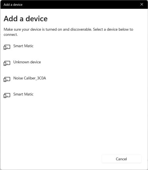 5. Se o seu microfone sem fio estiver no modo de emparelhamento, ele aparecerá aqui. Quando ele aparecer na tela, clique nele e siga as instruções na tela para emparelhar o microfone.