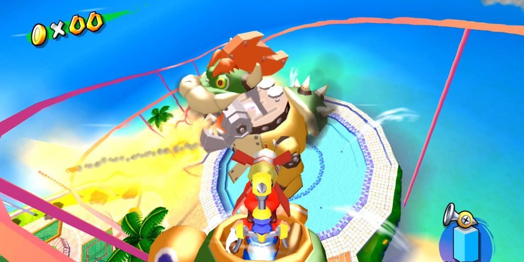 Sunshine marca a primeira aparição de Bowser Jr. na série Super Mario. Uma luta no início do jogo coloca Mario contra Mecha Bowser (na verdade Bowser Jr. em um traje de robô gigante). Mario atira foguetes de água em Mecha Bowser enquanto anda de montanha-russa, o que é simplesmente divertido.