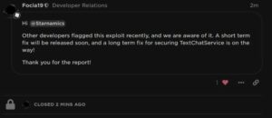 Felizmente, os desenvolvedores do Roblox parecem estar cientes da exploração do banimento do bate-papo e corrigimos o problema temporariamente para que os jogadores possam aproveitar os jogos na plataforma novamente.