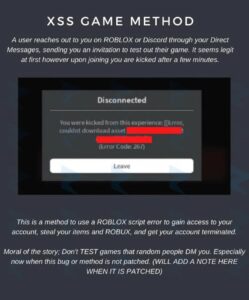 O exploit funciona enviando aos jogadores do Roblox uma mensagem de um link de convite para um jogo. Depois de entrar no servidor por algum tempo, o jogo te expulsa e te bane.